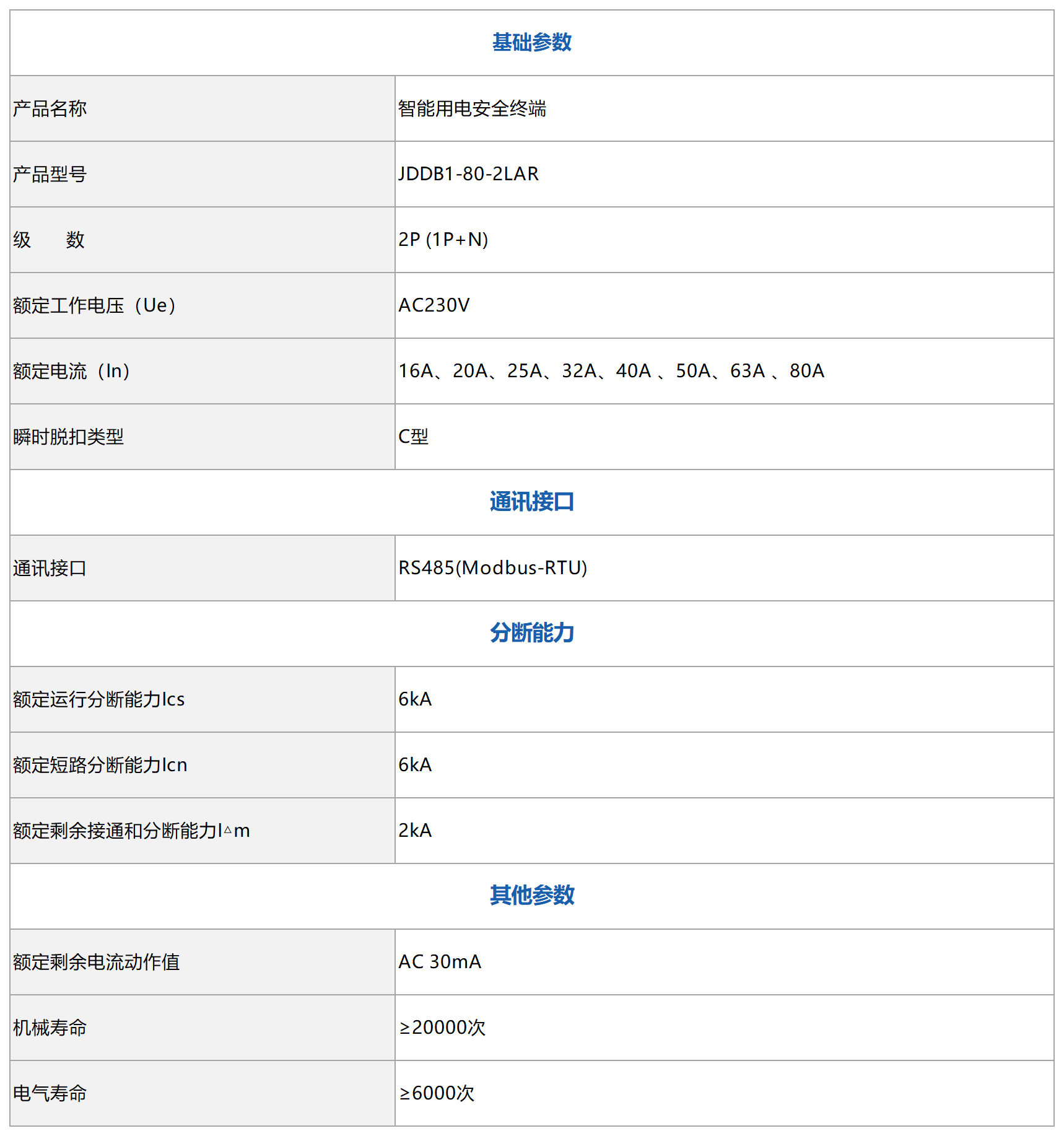 智能用电安全终端 JDDB1-80-2LAR